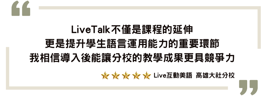 Live Talk 在課程中並不是取代正規教學,而是作為一個「橋梁」,把課堂上學到的知識轉化為真實的表達經驗,幫助學生把語言從「書本」帶到「交流」。