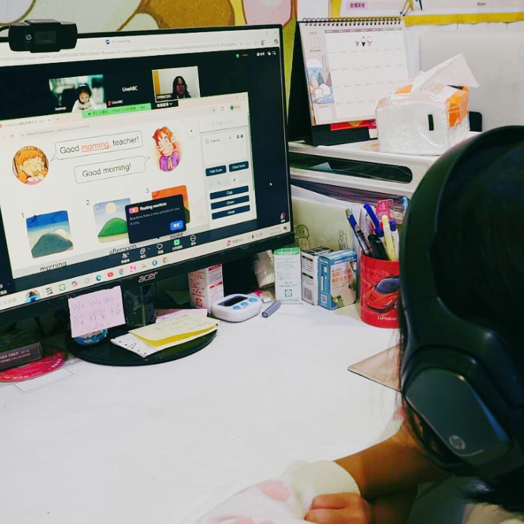剛開始上Livetalk的時候很開心,因為在家裡可以看到同學,老師還會額外補充知識。