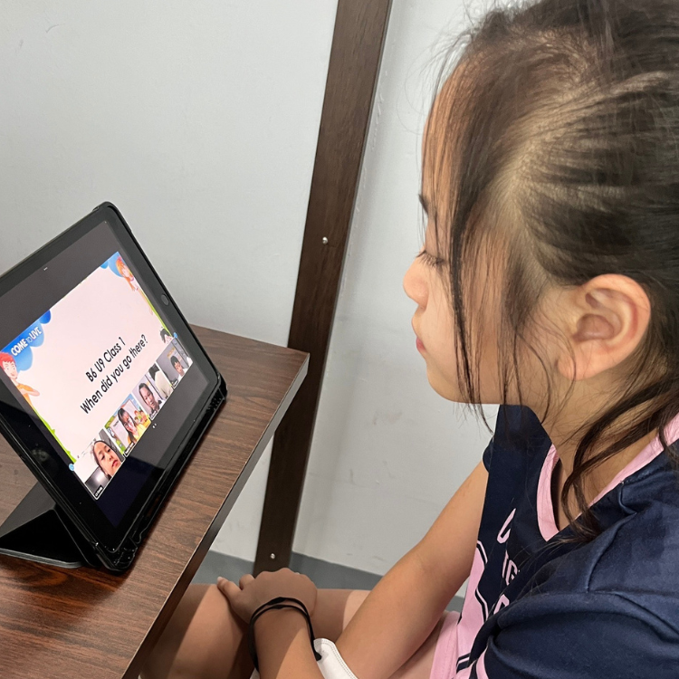 我記得小學一年級第一次上 Live Talk 的時候,好緊張喔!因為老師會一直問問題,我很怕自己答不出來。可是後來發現老師很親切,還會笑著鼓勵我們,所以我就慢慢放鬆下來了。