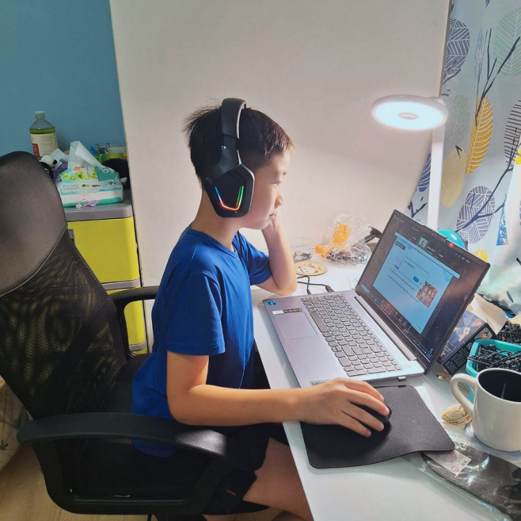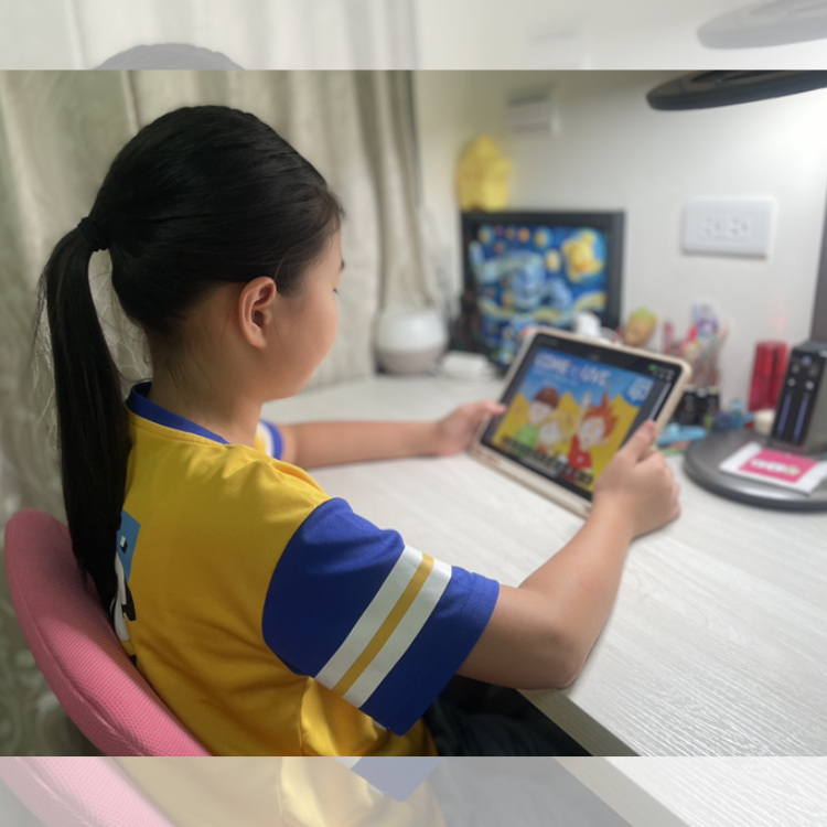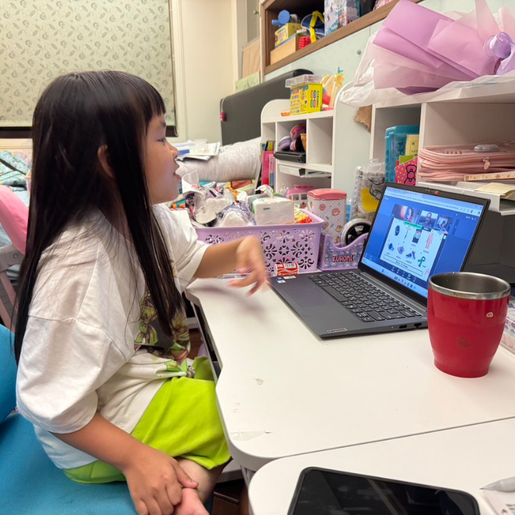 剛開始上線上課程覺得很新鮮特別,在家就可以直接上課,還可以跟不同的外師做互動,遇到不會的題目,老師也會直接線上引導,課程會用遊戲的方式進行,還會有加分活動,所以我很期待輪到我的時候。