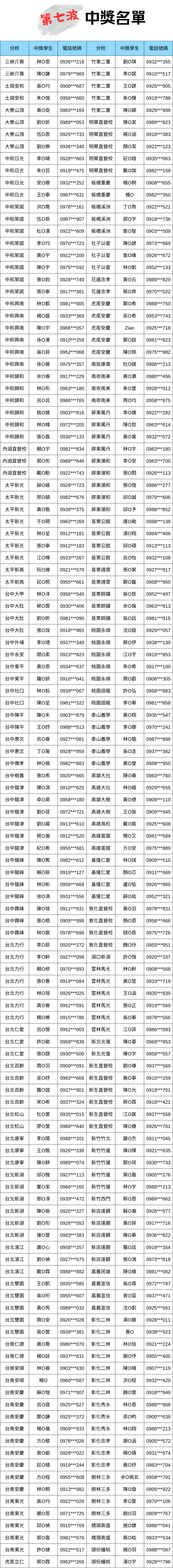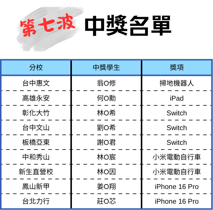 中獎名單
